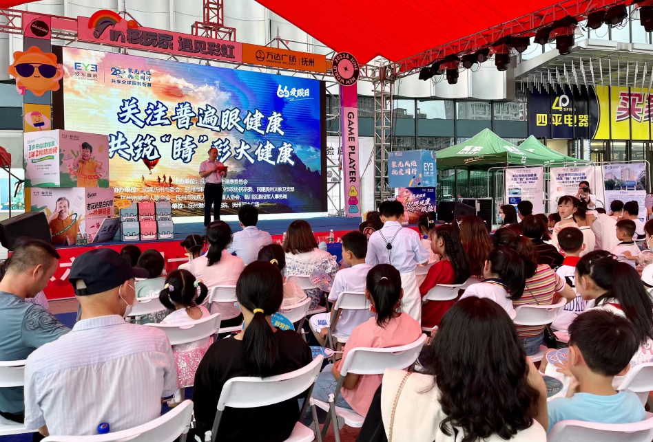 6 月5日下午,由抚州市卫生健康委员会主办,民建抚州市委会、抚州市科协、抚州市政协民宗委、民建抚州文教卫支部协办,抚州爱尔眼科医院承办的以“关注普遍眼健康,共筑‘睛’彩大健康”为主题的第27个全国“爱眼日”义诊活动在万达广场举行。